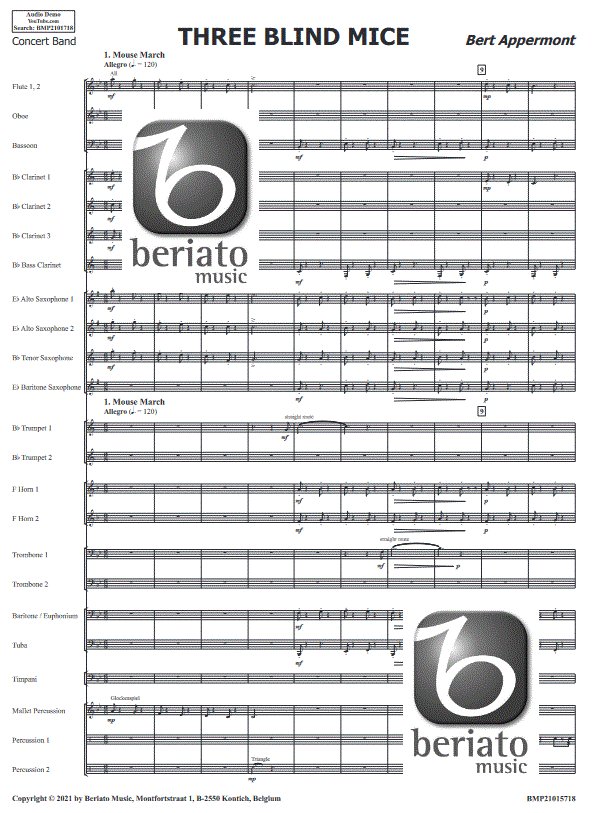 3 Blind Mice (Three) - click here 3 Blind Mice (Three) (concert/wind band), full score and parts 129.99