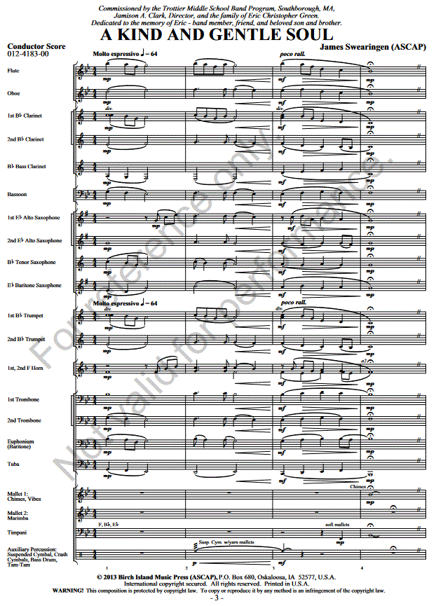 A Kind And Gentle Soul - click here A Kind And Gentle Soul (concert/wind band), full score 9.41