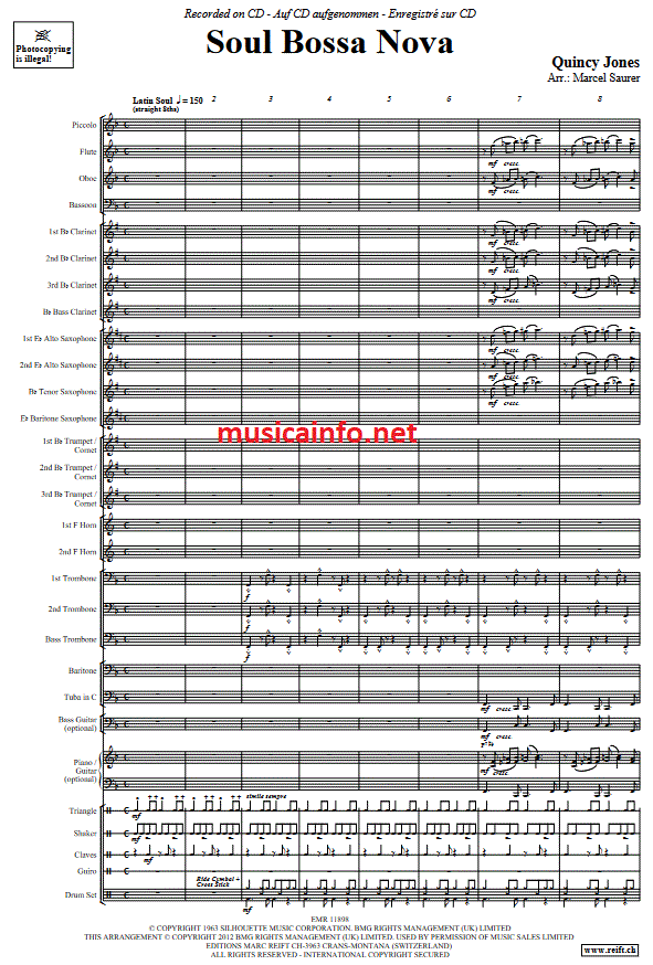 Soul Bossa Nova - click here Soul Bossa Nova (concert/wind band; or; fanfare band), full score and parts 144.69