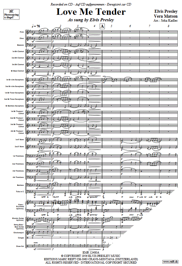 Love Me Tender - click here Love Me Tender (concert/wind band; or; fanfare band), full score and parts 110.68