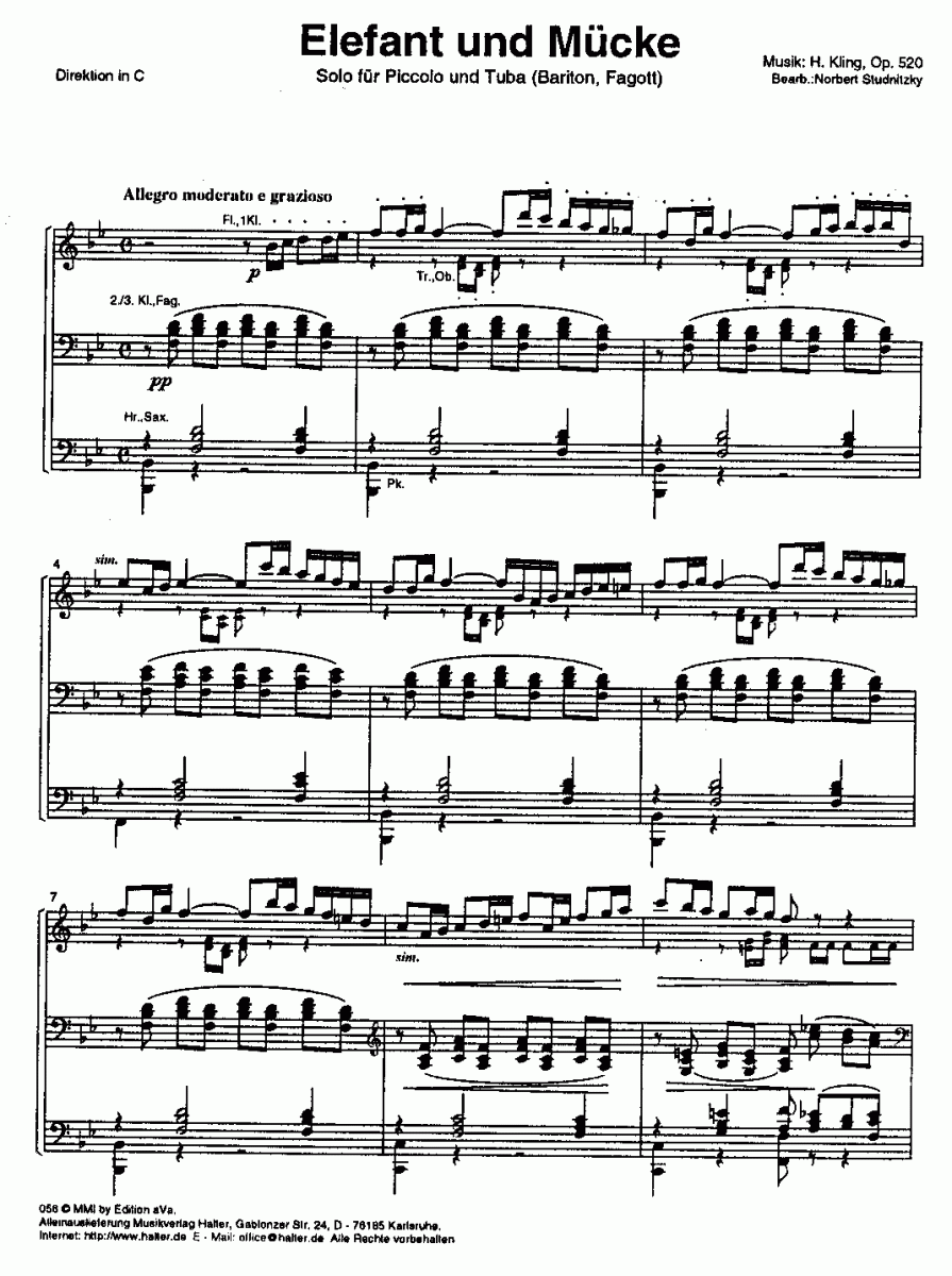 Elephant und Mücke - click here Elephant und Mücke (concert/wind band; piccolo; and; tuba), Condensed Score and parts 82.90