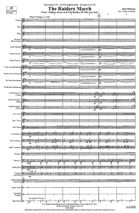 Raiders March (from 'Indiana Jones and the Lost Ark') - click here Raiders March (from 'Indiana Jones and the Lost Ark') (concert/wind band), full score