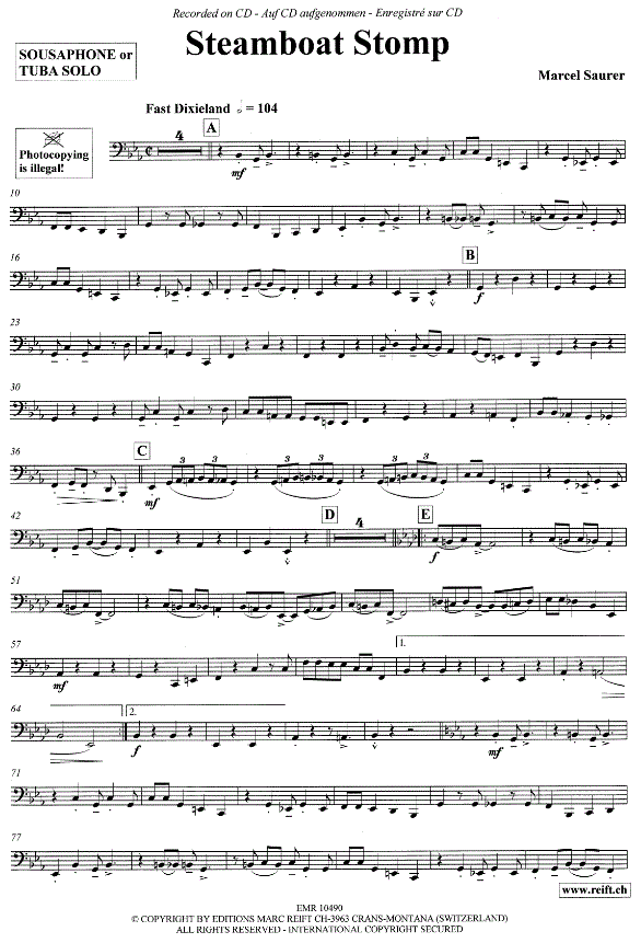 Steamboat Stomp - click here Steamboat Stomp (concert/wind band; or; fanfare band; tuba in C (bass clef)), full score and parts 176.14