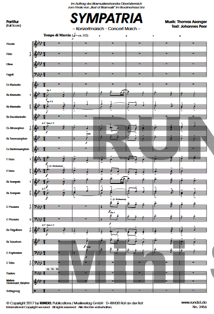 Additional info/contents SYMPATRIA – a concert march for wind band - was commissioned by leading conductor Walter Rescheneder for the Upper Austrian wind band association and the newspaper OÖ Nachrichten on the occasion of the contest "Best of Blasmusik". It was nominated as compulsory test piece at the contest finale for traditional band music in the great hall of the Brucknerhaus Linz on November 19, 2017. The title is a creation of two Latin words: "sym" (together) and "patria" (homeland), stating that home is less a question of geographical origin but rather a feeling of social belongingness. Home is were we feel at home.