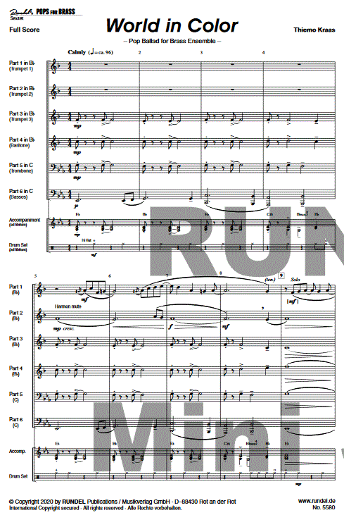 Welt in Farbe (World in Color) - click here Welt in Farbe (World in Color) (3Trp:2Trb; tuba; optional; rhythm section; ]), full score and parts