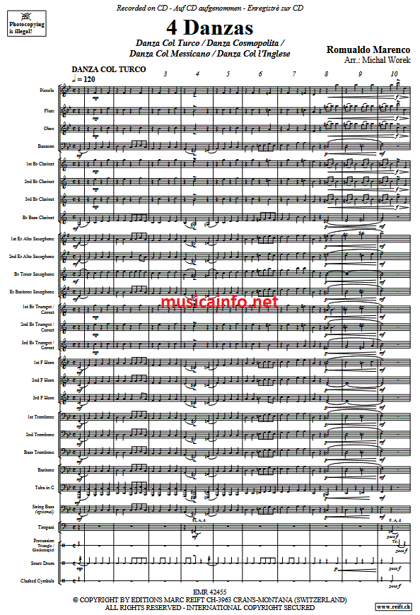Additional info/contents Romualdo Marenco's "4 Danzas," arranged by Michal Worek, is a valuable addition to intermediate wind orchestras and brass bands. The combination of historical and musical context with a practical approach offers ensembles the opportunity to work on stylistically diverse and sonically appealing music. This arrangement not only supports musical education but also expands the repertoire with varied and challenging works that are ideally suited for concert programs.