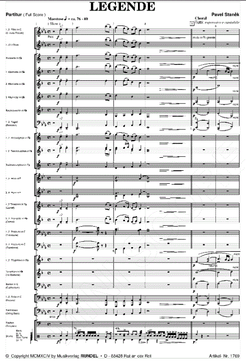 Legende - click here Legende (concert/wind band), full score and parts; and; condensed score