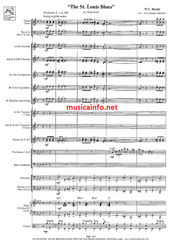 St. Louis Blues, The - click here St. Louis Blues, The (concert/wind band), full score and parts 164.77